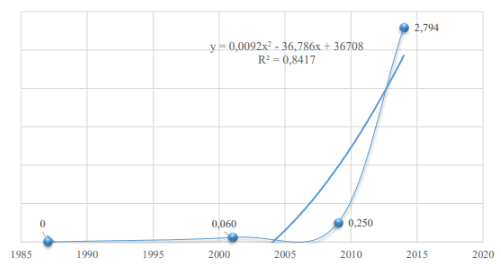 Figura 2. Curva de tasa de cambio del periodo de 1987 a 2014. [2]