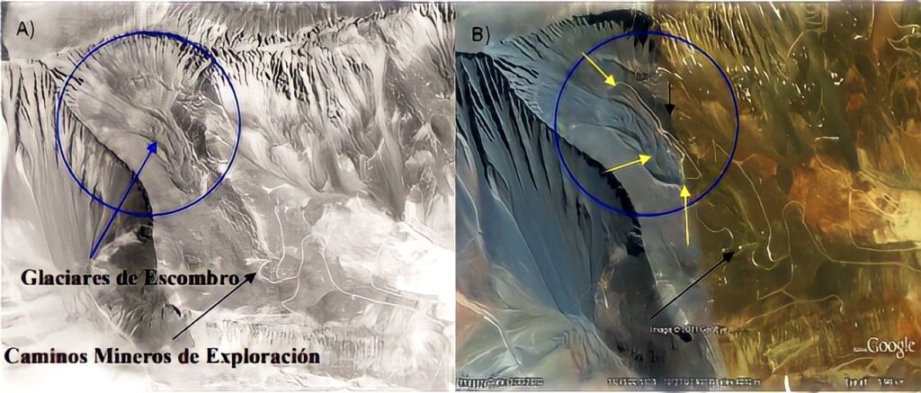 Este informe relata que la empresa Xstrata Copper generó un gran impacto ambiental al construir caminos de acceso y exploración que faciliten el proyecto minero El Pachón en medio de varios glaciares de escombro, así como también destinaron áreas de escombreras en medio de ellas [7]. La problemática en torno a este contexto es que los glaciares de escombro constituyen fuentes naturales de agua que controlan el flujo de los ríos de montaña, además son muy importantes, puesto que sus coberturas de rocas protegen al hielo del acelerado descongelamiento [8].